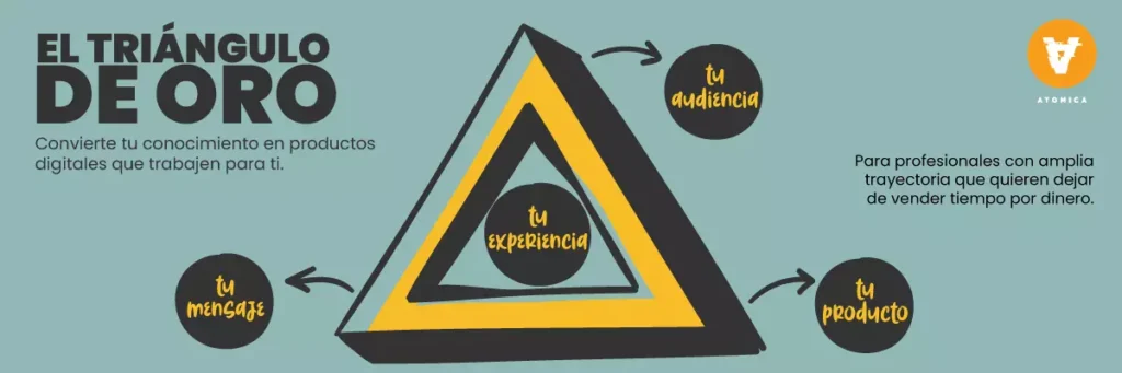 Una metodología insignia de Atomica Team. El Triángulo de Oro (TDO) es una proceso estratégico para convertir tu conocimiento y experiencia en productos digitales, que puedas comunicar con claridad, vender con autoridad y escalar sin depender únicamente de tu tiempo.